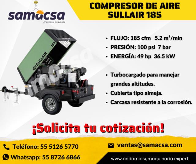 185 CFM, alto desempeño, bajo ruido y gran durabilidad.