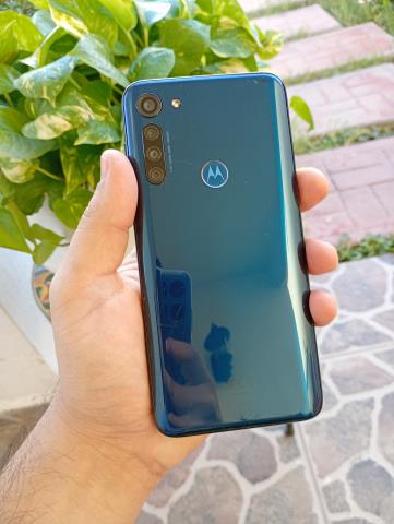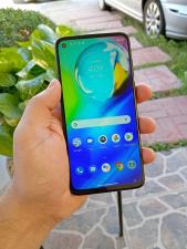 Celular Motorola Moto G8 Power azul turquesa.