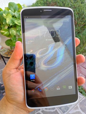 En muy buenas condiciones sin fallas, teléfono y tablet a la vez tiene para chip, liberada para cualquier compania, y se usa para lo básico para navegar por internet y ver videos en el navegador. Es de 8gb de memoria expandible y pantalla de 8 pulgadas.
