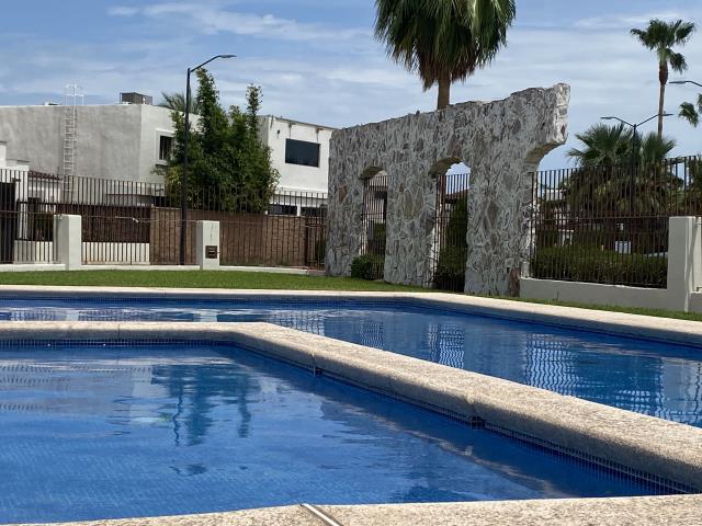 Son 3 recámaras, ( la principal con closet vestidor y baño) estancia, 2 Baños y medios, cuarto de lavado. patio amplio, Cochera techada para dos autos, ubicada frente a la alberca del área común.