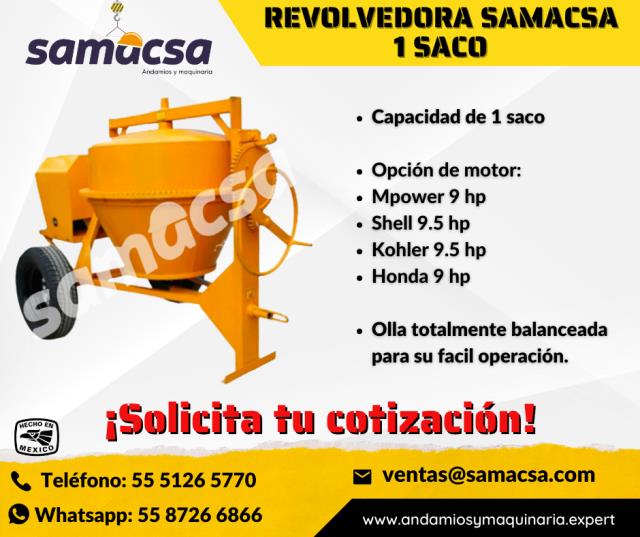 La Revolvedora de Concreto Samacsa de 1 saco está diseñada para brindar máxima eficiencia, durabilidad y facilidad de uso. Su estructura anticorrosiva y su diseño práctico facilitan la limpieza, la carga y la descarga, convirtiéndola en una herramienta esencial para cualquier proyecto de construcción.