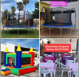 À la orden con la renta de Brinca brincas con red, inflables, sillas y mesas. Ha paquetes. Norte. Tambien con talller de costura para su brinca brinca. Cel/whatsapp 6622976066