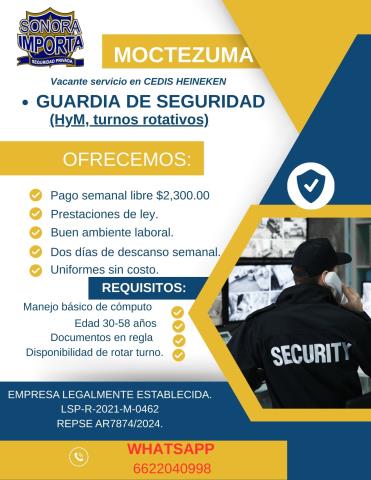 VACANTE PARA GUARDIAS DE SEGURIDAD PRIVADA.