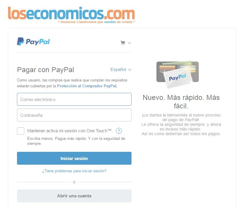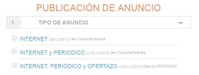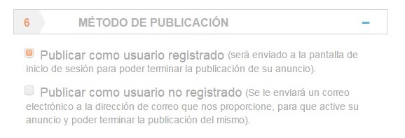 Seleccione el método por el que publicará su anuncio. Puede hacerlo sin registro proporcionando solamente su correo electrónico, o con su usuario de LOS ECONÓMICOS, que le brindará funcionalidades adicionales.