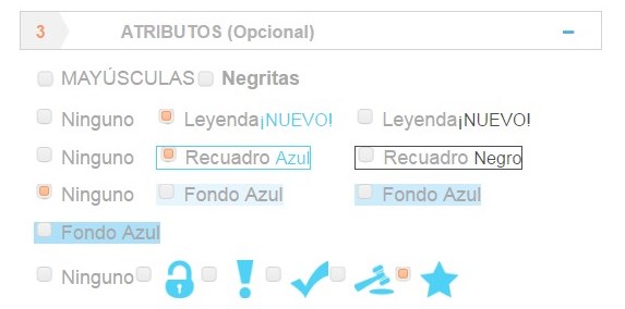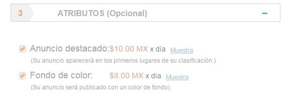 Seleccione entre los atributos ofrecidos algunos de su preferencia que desee agregar a su anuncio en periódico.