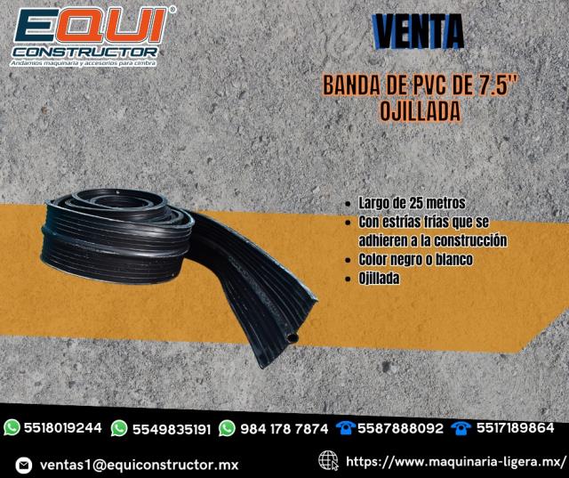 La Banda de Pvc 7.5 ojillada es fabricada con Policloruro de Vinilo (PVC 100% VIRGEN) y es un perfil con excelentes características para absorber el asentamiento normal que presentan las construcciones, evitando con ello que se filtre la humedad, contamos con ventas en el estado de Durango.