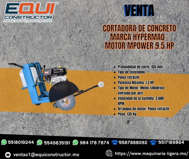 Teléfono: 5563024351 Venta de Cortadora de concreto hypermaq con motor mpower 9.5 hp
