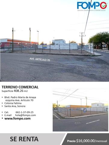 ¡ATENCIÓN! TERRENO COMERCIAL EN RENTA EN SANTA ANA, SONORA