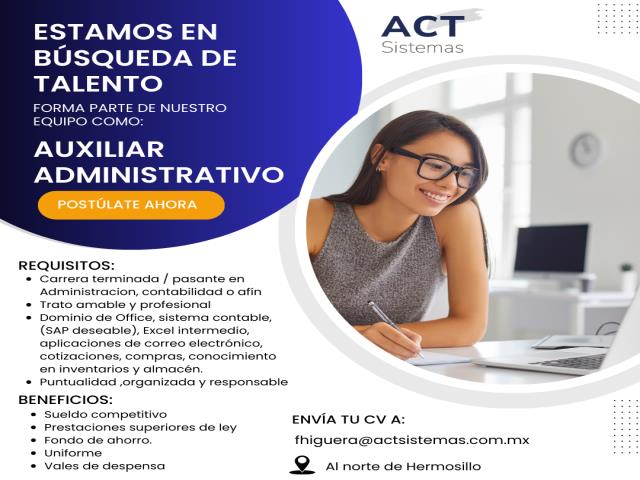 ACT SISTEMAS Solicita Auxiliar Administrativo