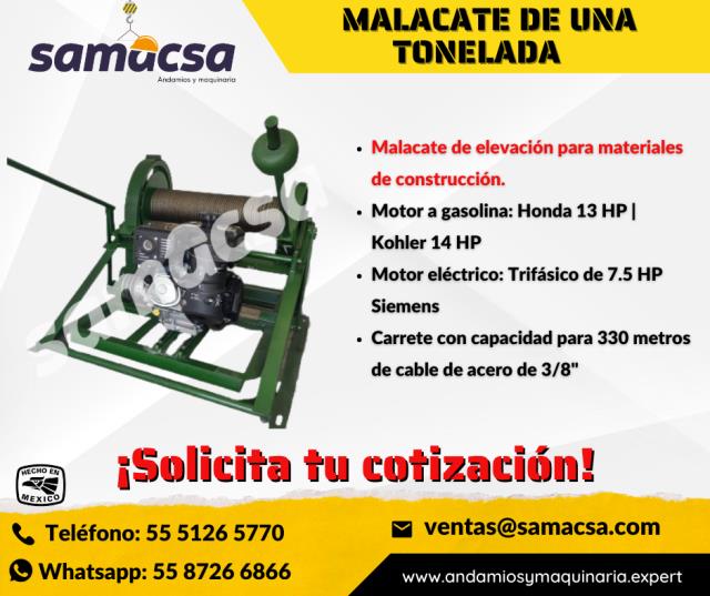 Nuestro malacate de 1 tonel está diseñado para ofrecer máxima potencia y reducir tiempos y costos en obra.