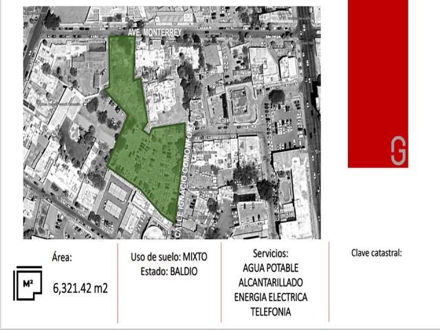 6321.42 M2 TERRENO EN VENTA SOBRE LA AVE. MONTERREY ENTRE GALEANA Y ROSALES, CENTRO HISTÓRICO.-