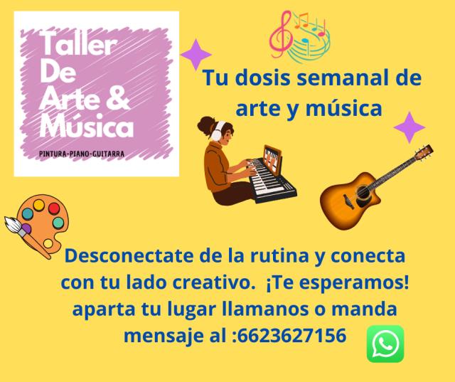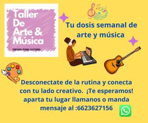 Taller de Arte y Música contamos con clases de pintura y dibujo asi como guitarra y piano para principiantes inscripciones todo el año llama o manda what app al 6623 627156 animate y aprende algo para toda la vida