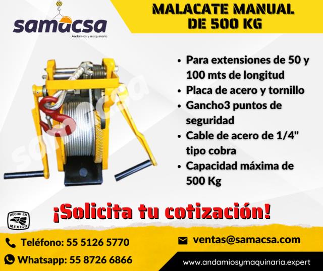 Optimiza tus maniobras de izado con nuestro Malacate Manual para Hamaca, diseñado para elevar o descender cargas de forma segura y eficiente.