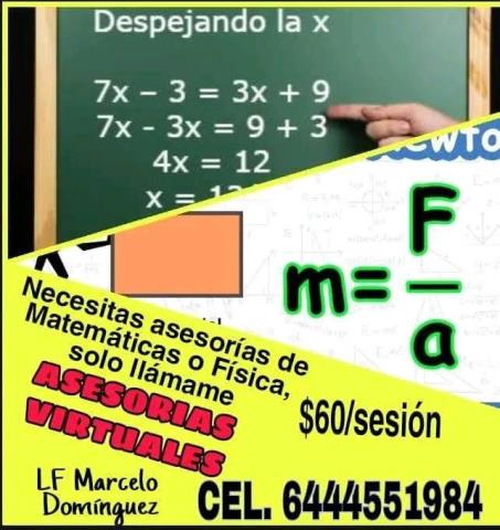 ¿TE TRAE DE CABEZA LOS EXAMENES DE FISICA Y MATEMATICAS? NIVELACIÓN Y PREPARACION EN TUS EXAMENES DE ADMISION A LA UNIVERSIDAD. CURSO ONLINE. INFORMES AL WHATSAPP 6444551984.