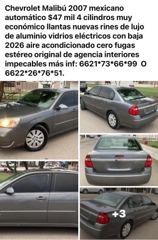 MALIBÚ 2007, $47,000.00 1, 140000kms, automático, 4cil, 4ptas, Gris, Chevrolet Malibú 2007 mexicano automático $47 mil 4 cilindros muy económico llantas nuevas rines de lujo de aluminio vidrios eléctricos con baja 2026 aire acondicionado cero fugas estéreo original de agencia interiores impecables más inf: 6621*73*66*99 O